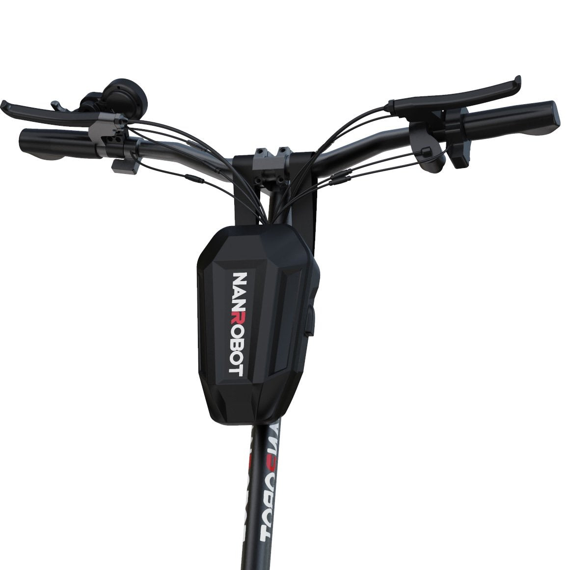 Our NANROBOT bag is a practical hard-shell waterproof pouch to carry your essentials during rides. It is spacious enough to house your external battery (up to 7kg), charger, phones, scooter lock and some first aid items.